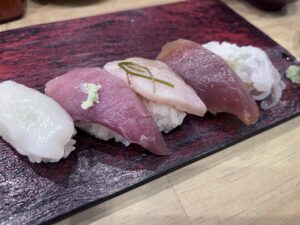 実際は4貫ずつ、説明をしてもらいながら置かれていきます。(ですから、全体像の写真とはなりません)