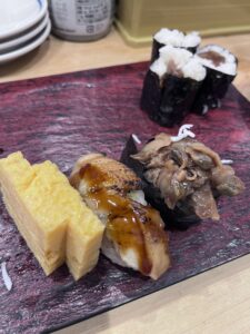 ランチセットを頼んで様子を伺う。穴子は久しぶりに食べました。いつも好きなものと、回転寿司だと決まったものに落ち着いてしまうので、アサリなんかも普段選ばないからよかったです。